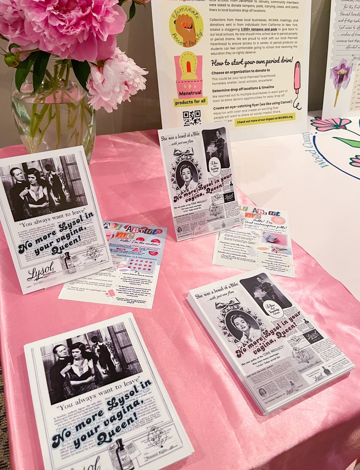 On May 17th, 2025, the WCWRA held Cocktails & Contraceptives!, a sold out event to benefit Planned Parenthood Vienna. Cocktails and Contraceptives provided attendees with information on the use of different contraceptives, the US history of contraceptives, and free access to condoms and over the counter birth control pills, all while sipping on themed cocktails! The walls displayed Planned Parenthood testimonials regarding the quality of care and ease of access services that Planned Parenthood provides.